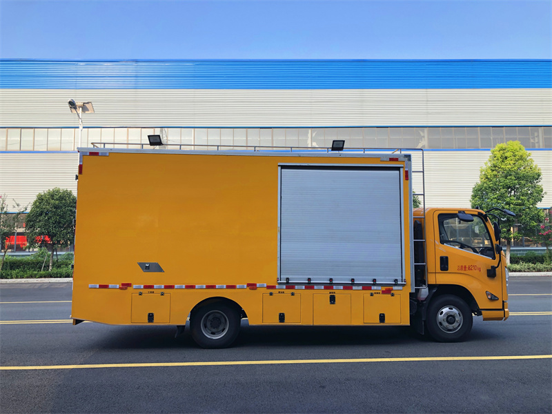 上裝配置:定制復合箱體,帶降噪功能,不銹鋼內飾,75WK柴油發動機,雙風機組合,定制控制系統,160米繞線機,紫外光大小燈鏈各一組,箱體帶冷暖空調,氣動遮陽板,不銹鋼儲物柜,兩側帶工具箱,更多配置